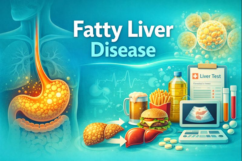 Fatty Liver Disease: Causes, Stages and Can It Be Reversed? Gastroenterology Fatty liver disease is increasingly common in Mysore and Coorg due to sedentary lifestyles and dietary habits. Early detection can completely reverse the condition. What Is Fatty Liver Disease? Fatty liver occurs when excess fat accumulates in liver cells. It may be alcoholic or non-alcoholic (NAFLD). Symptoms Most patients are asymptomatic. Some may experience: Fatigue Right-sided abdominal discomfort Indigestion Stages of Fatty Liver Simple fatty liver Fatty liver with inflammation Fibrosis Cirrhosis How Is Fatty Liver Diagnosed? Blood tests Ultrasound abdomen Fibroscan to assess liver stiffness Can Fatty Liver Be Reversed? Yes, especially in early stages, with: Weight reduction Dietary changes Exercise Control of diabetes and cholesterol When to See a Liver Specialist in Mysore If fatty liver is detected on scan or blood tests are abnormal, early consultation is essential. Dr Nikhil Nanjappa provides structured fatty liver evaluation and Fibroscan-based monitoring in Mysore.