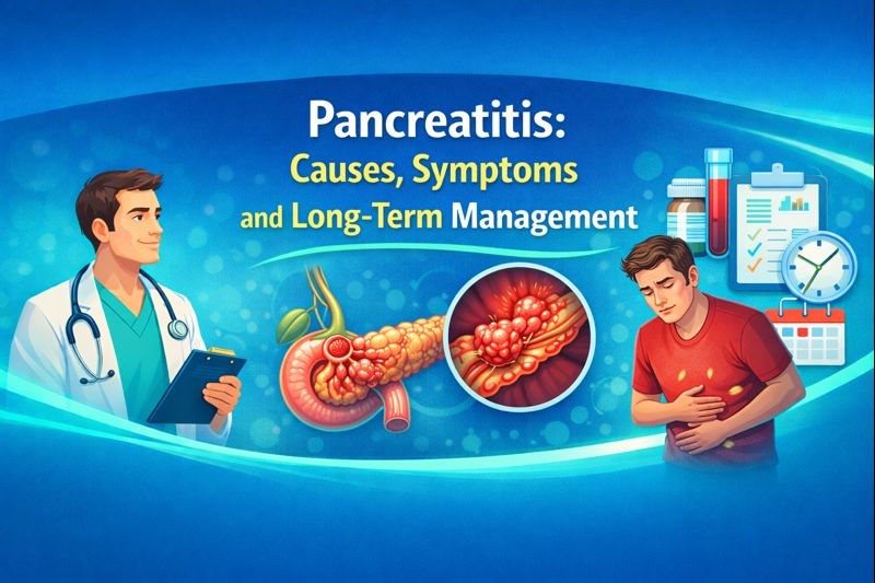 Pancreatitis: Causes, Symptoms and Long-Term Management Gastroenterology Pancreatitis is inflammation of the pancreas and can be acute or chronic. It requires timely treatment to prevent serious complications. What Is Pancreatitis? Severe upper abdominal pain Pain radiating to the back Vomiting and nausea Fever Loss of appetite Common Causes Alcohol consumption Gallstones High triglycerides Certain medications Acute vs Chronic Pancreatitis Acute pancreatitis Sudden onset Often reversible Chronic pancreatitis Long-standing inflammation Leads to diabetes and digestive problems How Is Pancreatitis Diagnosed? Blood tests (amylase, lipase) Ultrasound or CT scan Endoscopic evaluation when required Treatment Approach Hospitalisation for acute attacks Pain control and nutritional support Treating underlying causes Surgical intervention in selected cases Early consultation with a gastroenterologist in Mysore can prevent recurrent pancreatitis and long-term damage.